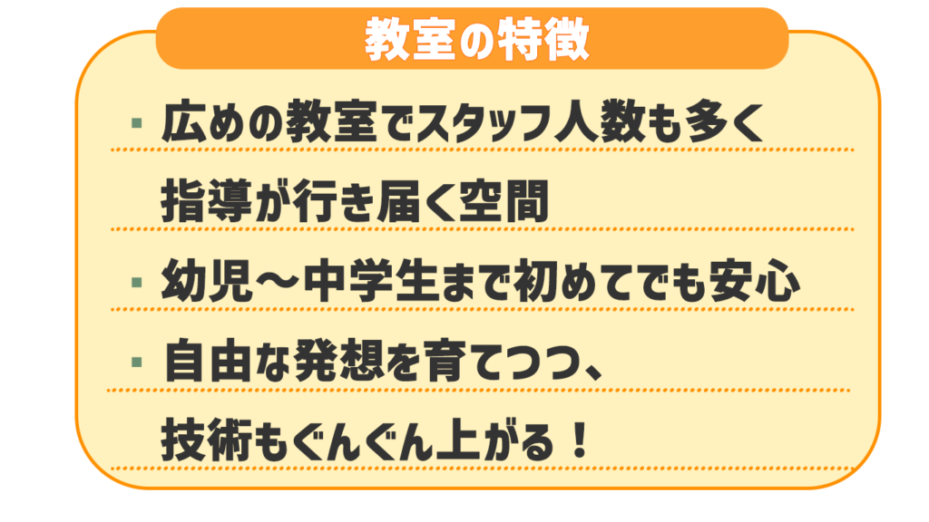・教室は2部屋に分かれており、4歳から中学生まで幅広い年齢に対応しています。